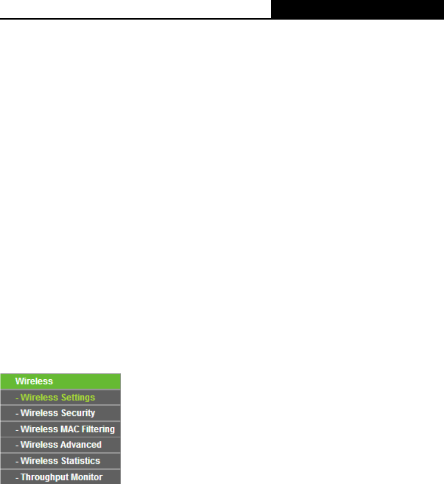 There are six submenus under the Wireless menu (shown in Figure 5-9): Wireless Settings,