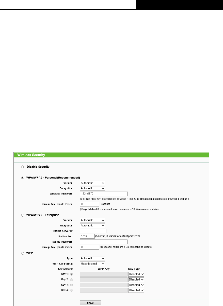 There are three wireless security modes supported by the Router: WPA/WPA2-Personal,