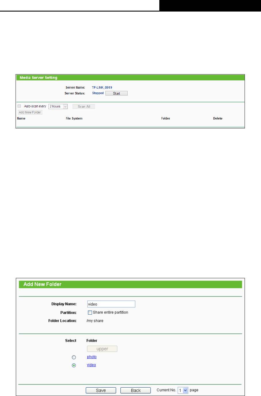 3. Click the Add New Folder button to specify a folder as the search path of media server. The