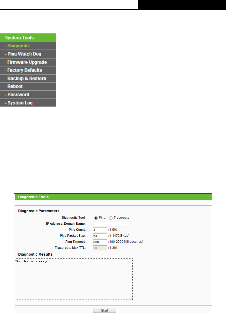• Ping - This diagnostic tool troubleshoots connectivity, reachability, and name resolution to