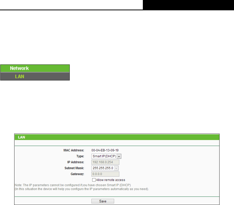 There is only one submenu under the Network menu (shown in Figure 6-4): LAN.