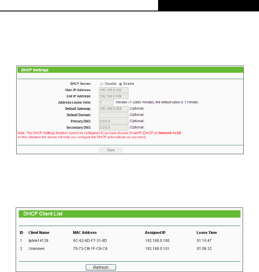 2. When you choose the Smart IP (DHCP) mode in Network → LAN, the DHCP Server function