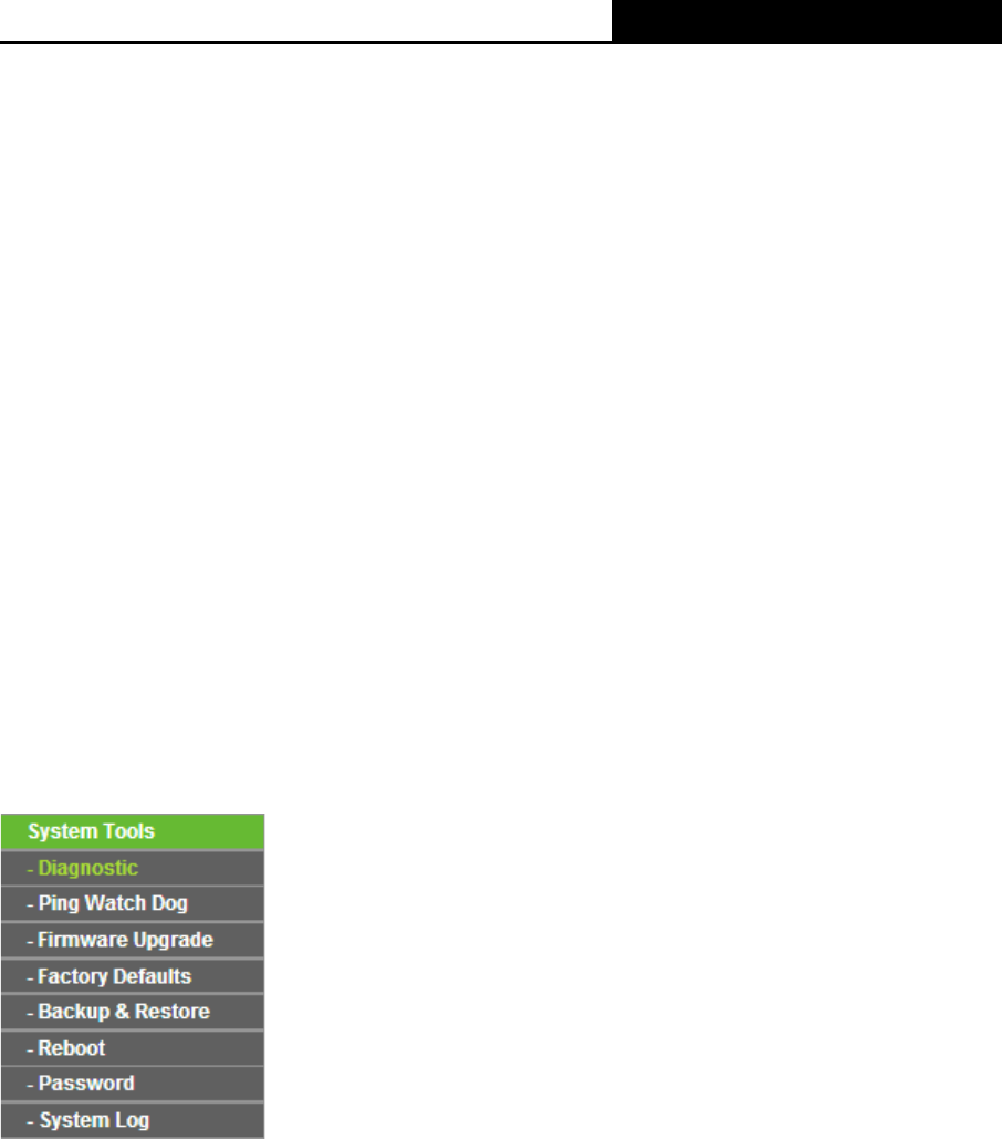 Diagnostic, Ping Watch Dog, Firmware Upgrade, Factory Defaults, Backup & Restore,