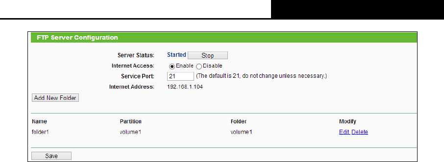 Internet Access - Select enable to allow access of the FTP server from the Internet.