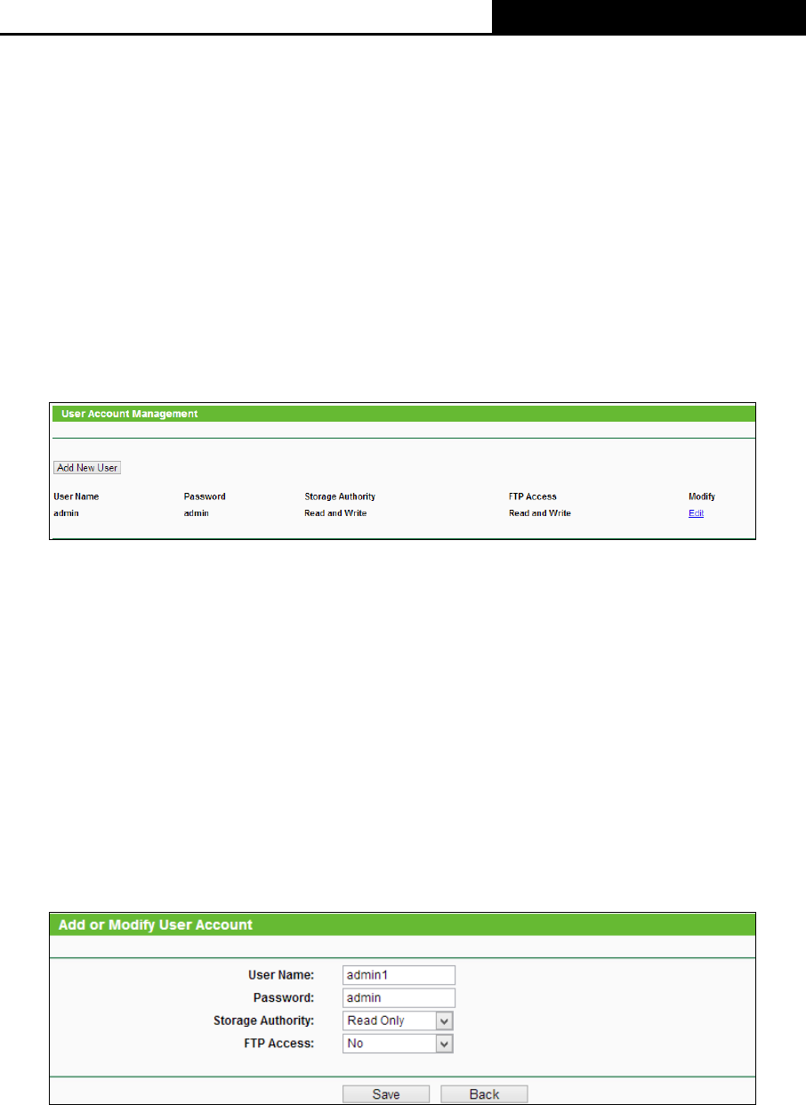 can access FTP Server while Guest has read-only access to Storage Sharing and cannot access