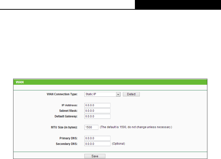 setting, select Static IP. The Static IP settings page will appear as shown in Figure 8-9.