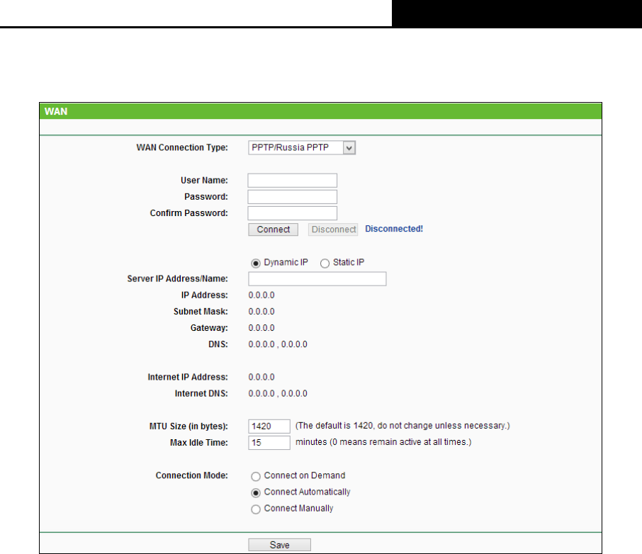 6. If your ISP provides PPTP connection, please select PPTP/Russia PPTP option. And you