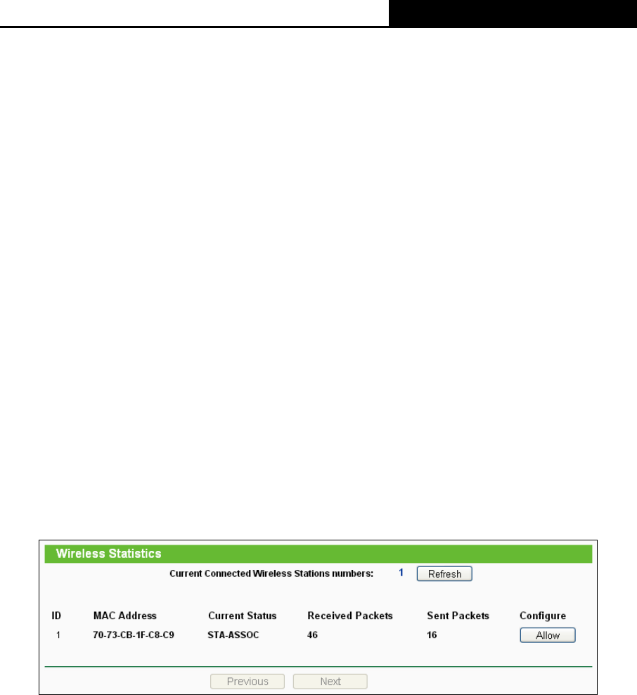 • Allow - If the Wireless MAC Filtering function enable, allow the station to access.