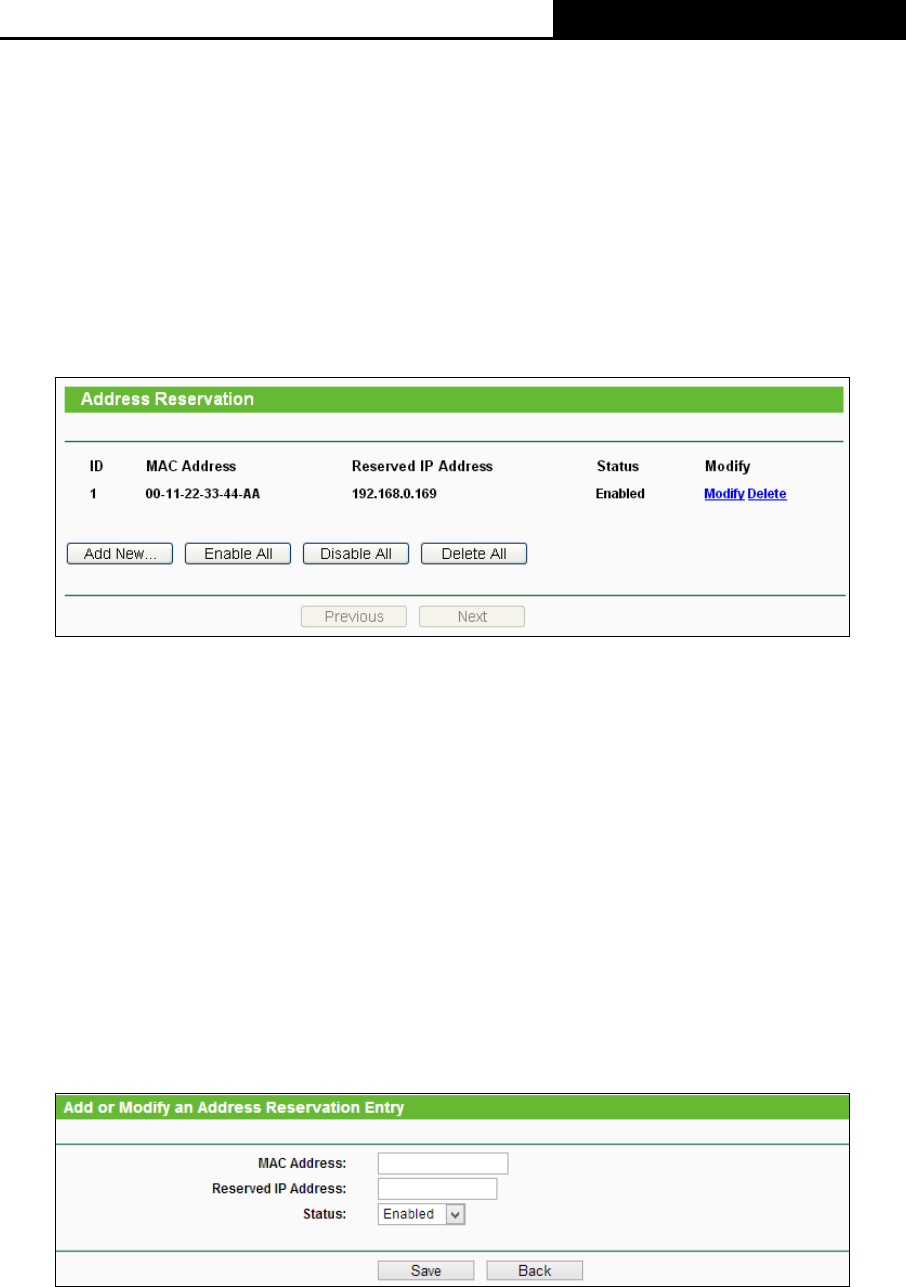 address for clients via the next screen (shown in Figure 8-28).When you specify a reserved IP