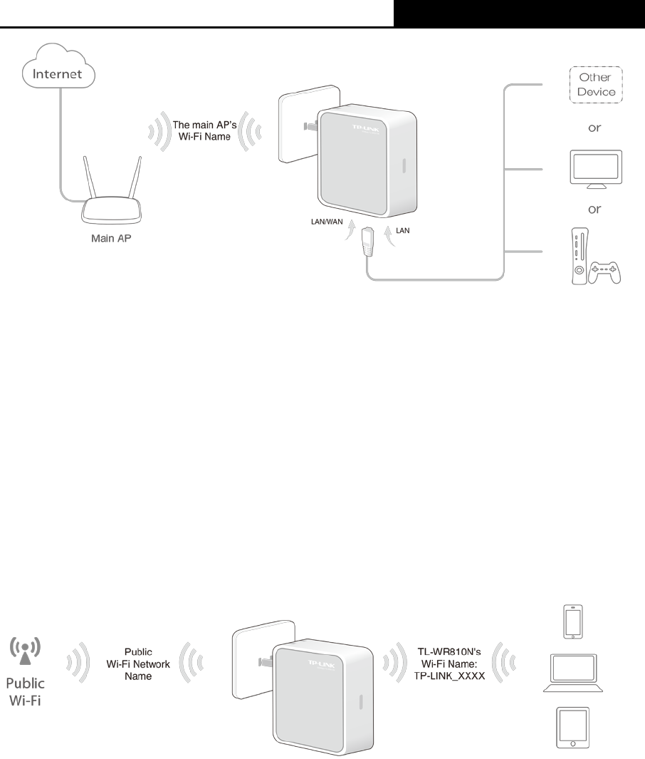 In Hotspot Router mode, TL-WR810N enables multiple users to share Internet connection from