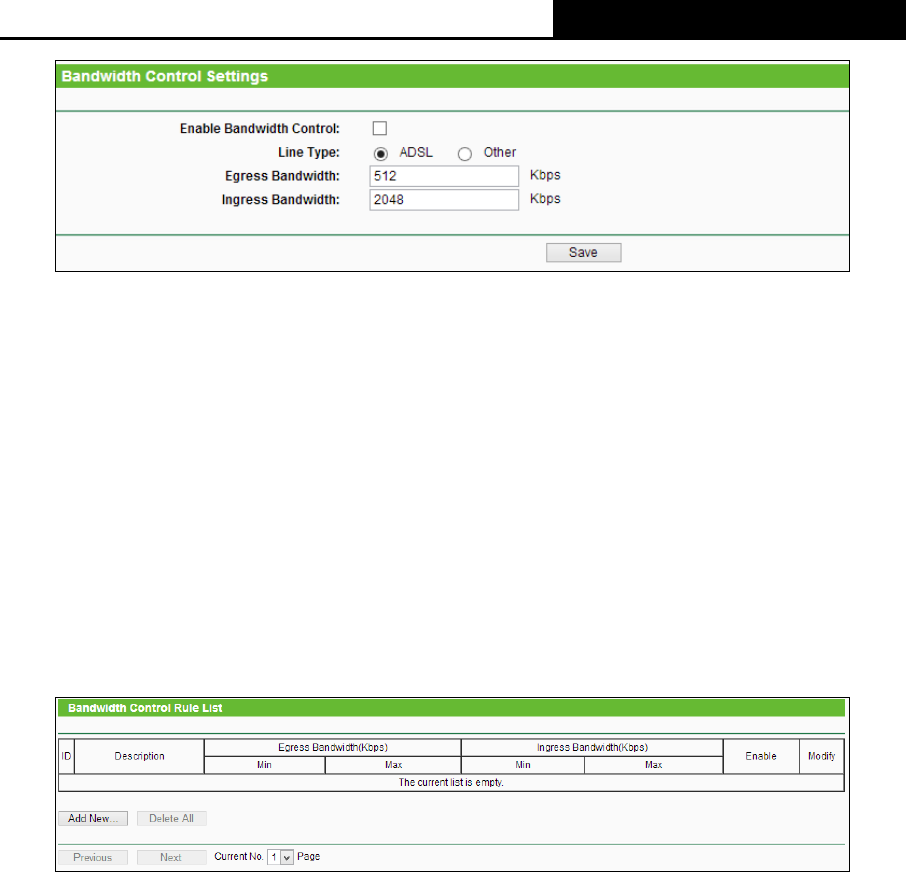 Enable Bandwidth Control - Check this box so that the Bandwidth Control settings can take