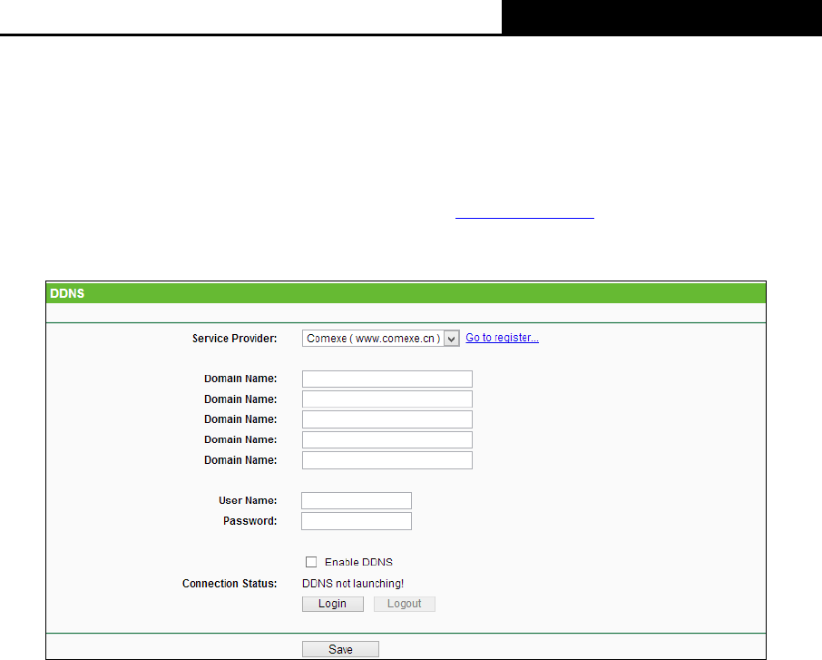 If the dynamic DNS Service Provider you select is www.comexe.cn, the page will appear as