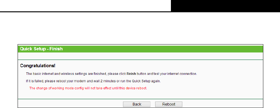 4. The Finish page is shown as Figure 3-32. Click the Reboot button to make your wireless
