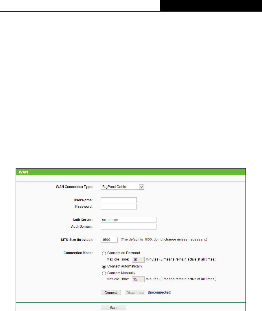 4. If your ISP provides BigPond Cable connection, please select BigPond Cable option. Then