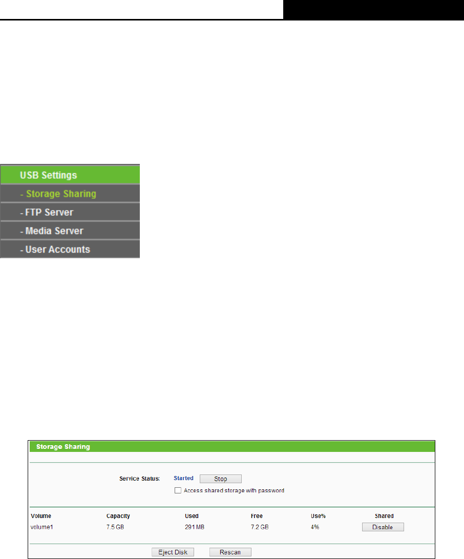 There are four submenus under the USB Settings menu (shown in Figure 4-29), Storage Sharing,