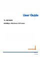 TL-WR840N 300Mbps Wireless N Router User Guide Appendix D: Glossary 802.11n - 802.11n builds upon previous 802.11 standards by adding MIMO (multiple-input multiple-output). MIMO uses multiple transmitter and receiver antennas to allow for increased data throughput via spatial multiplexing and increased range by exploiting the spatial diversity, perhaps through coding schemes like Alamouti coding. The Enhanced Wireless Consortium (EWC) [3] was formed to help accelerate the IEEE 802.