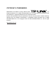 COPYRIGHT & TRADEMARKS Specifications are subject to change without notice. is a registered trademark of TP-LINK TECHNOLOGIES CO., LTD. Other brands and product names are trademarks or registered trademarks of their respective holders. No part of the specifications may be reproduced in any form or by any means or used to make any derivative such as translation, transformation, or adaptation without permission from TP-LINK TECHNOLOGIES CO., LTD. Copyright © 2013 TP-LINK TECHNOLOGIES CO., LTD.