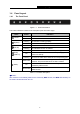 TL-WR841HP Modify 300Mbps High Power Wireless N Router UDP Tx The number of UDP packets transmitted to the WAN per second at the specified Packets Statistics interval. It is shown like “current transmitting rate / Max transmitting rate”. TCP SYN Tx The number of TCP SYN packets transmitted to the WAN per second at the specified Packets Statistics interval. It is shown like “current transmitting rate / Max transmitting rate”. Reset Reset the value of he entry to zero.