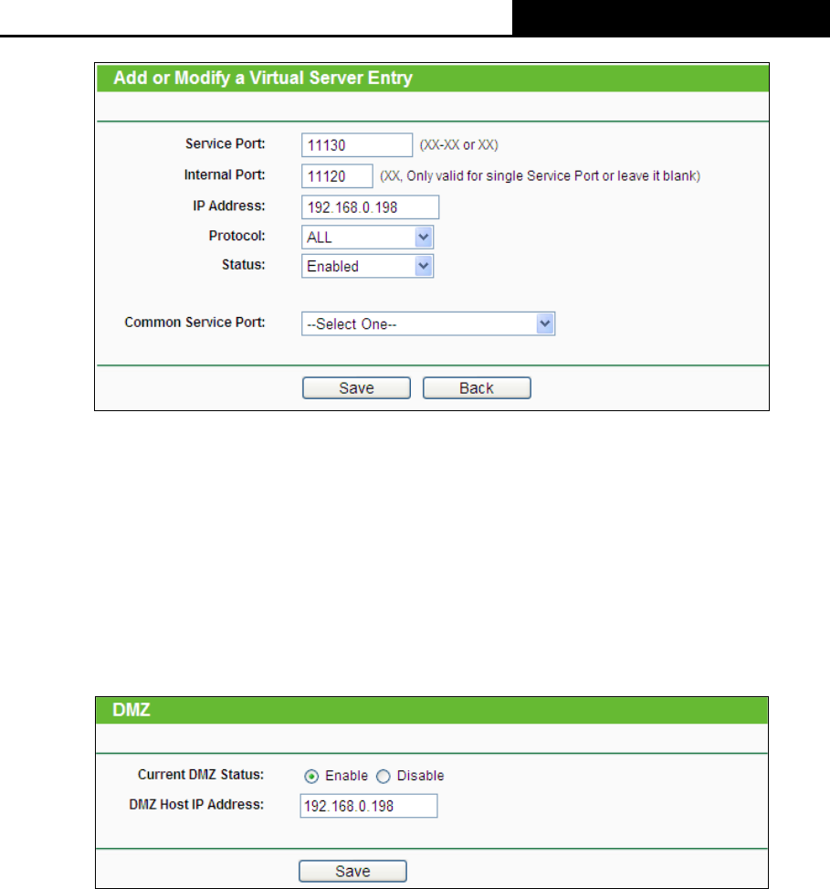 and type your IP address into the “DMZ Host IP Address” field, using 192.168.0.198 as
