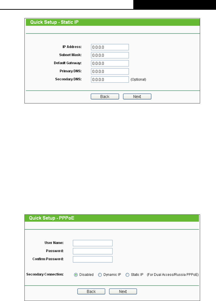 Figure 3-8 Quick Setup - Static IP