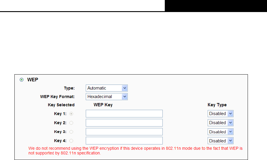 Type - you can choose the type for the WEP security on the pull-down list. The default