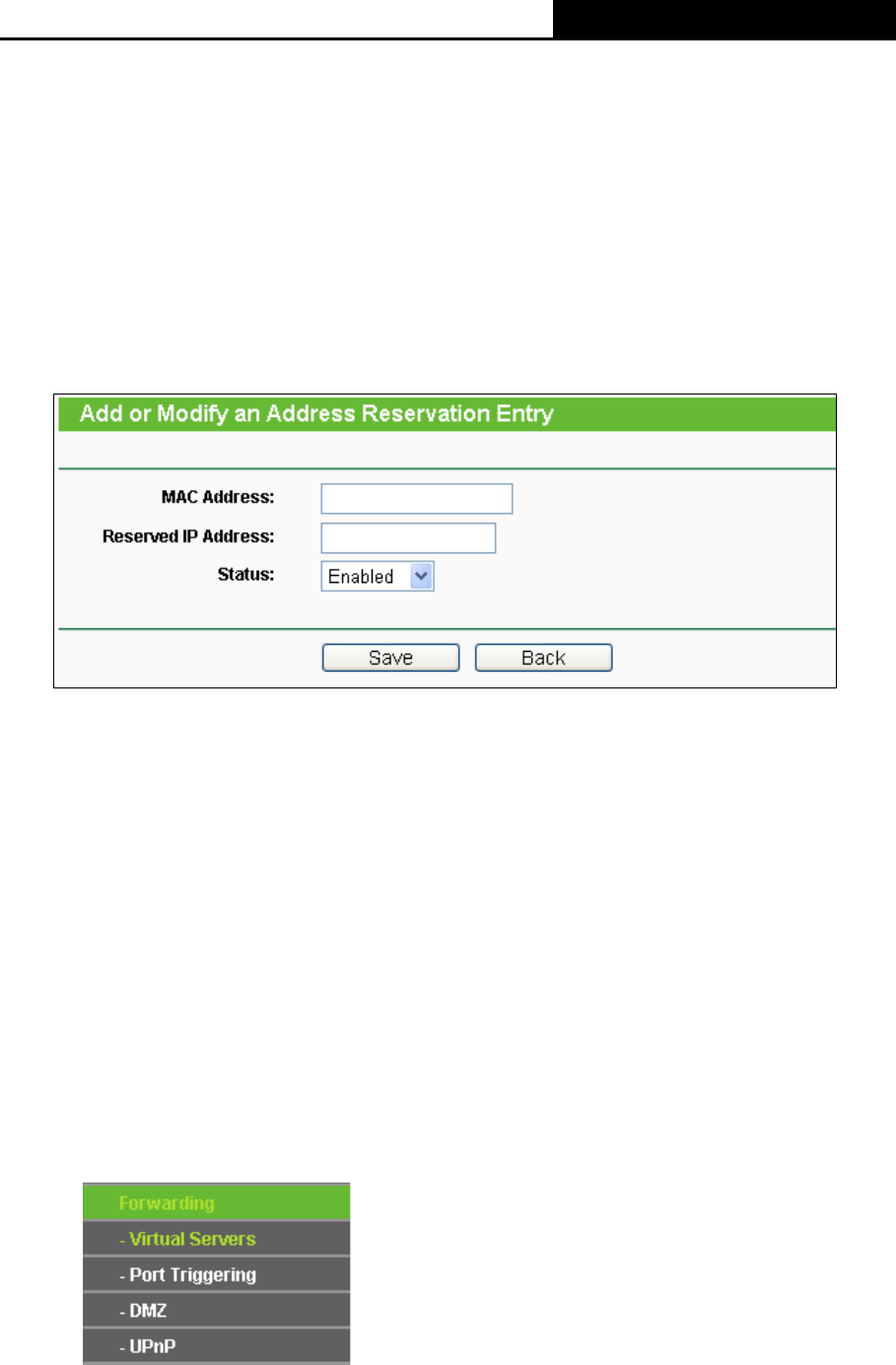 Figure 4-29 Add or Modify an Address Reservation Entry