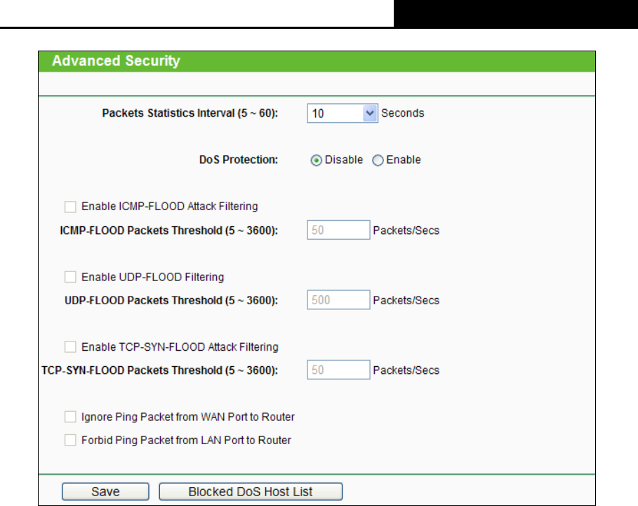 Packets Statistics Interval (5~60) - The default value is 10. Select a value between 5 and