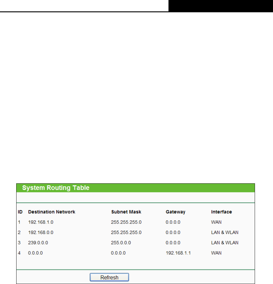 Choose menu “Advanced Routing → System Routing Table”, and then you can view the