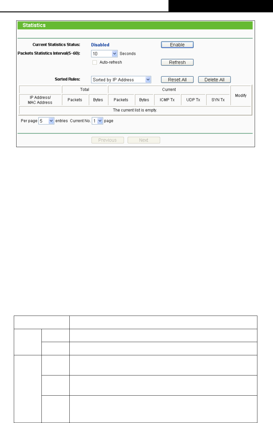 Current Statistics Status - Enable or Disable. The default value is disabled. To enable, click