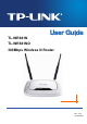 TL-WR841N/TL-WR841ND 300Mbps Wireless N Router 1.2 Conventions The Router or TL-WR841N/TL-WR841ND mentioned in this guide stands for TL-WR841N/TL-WR841ND 300Mbps Wireless N Router without any explanation. ) Note: The two devices of TL-WR841N and TL-WR841ND are sharing this User Guide. For simplicity, we will take TL-WR841ND for example throughout this Guide. The differences between them are: ¾ TL-WR841N Router with 2 fixed antennas. ¾ TL-WR841ND Router with 2 detachable antennas. 1.