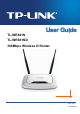 TL-WR841N/TL-WR841ND 300Mbps Wireless N Router User Guide Package Contents The following items should be found in your package: ¾ TL-WR841N/TL-WR841ND 300Mbps Wireless N Router ¾ Power Adapter for TL-WR841N/TL-WR841ND 300Mbps Wireless N Router ¾ Quick Installation Guide ¾ Resource CD for TL-WR841N/TL-WR841ND 300Mbps Wireless N Router, including: • This Guide • Other Helpful Information ) Note: Make sure that the package contains the above items.