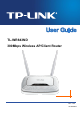 TL-WR843ND 300Mbps Wireless AP/Client Router User Guide Simple Installation Since the Router is compatible with virtually all the major operating systems, it is very easy to manage. Quick Setup Wizard is supported and detailed instructions are provided step by step in this user guide. Before installing the Router, please look through this guide to know all the Router’s functions. 1.