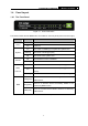 TL-WR941N/TL-WR941ND Wireless N Router 1.4.2 The Rear Panel Figure 1-2 Rear Panel sketch The following parts are located on the rear panel (View from left to right). ¾ Power socket: The Power socket is where you will connect the power adapter. Please use the power adapter provided with this TL-WR941N/941ND Wireless N Router.