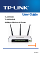 TL-WR940N/TL-WR941ND 1.2 300Mbps Wireless N Router Conventions The router or TL-WR940N/TL-WR941ND mentioned in this guide stands for TL-WR940N/TL-WR941ND 300Mbps Wireless N Router without any explanation. ) Note: The two devices of TL-WR940N and TL-WR941ND are sharing this User Guide. For simplicity, we will take TL-WR941ND for example throughout this Guide. The differences between them are: ¾ TL-WR940N Router with 3 fixed antennas. ¾ TL-WR941ND Router with 3 detachable antennas. 1.