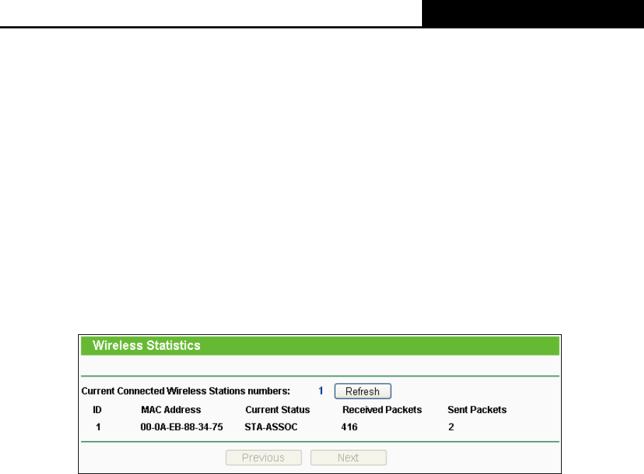 If the numbers of connected wireless stations go beyond one page, click the Next button to go to