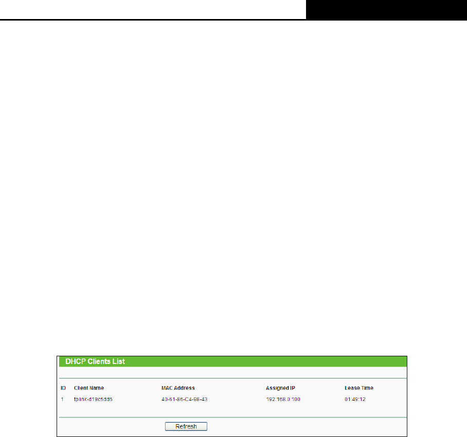 DHCP Client List”, and then you can view the information about the