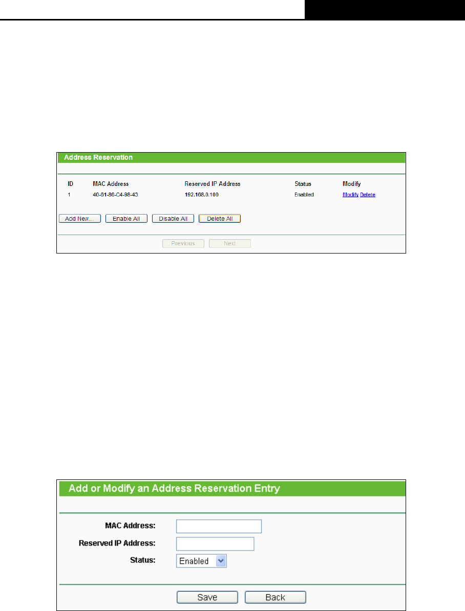 MAC Address - The MAC address of the PC for which you want to reserve IP address.