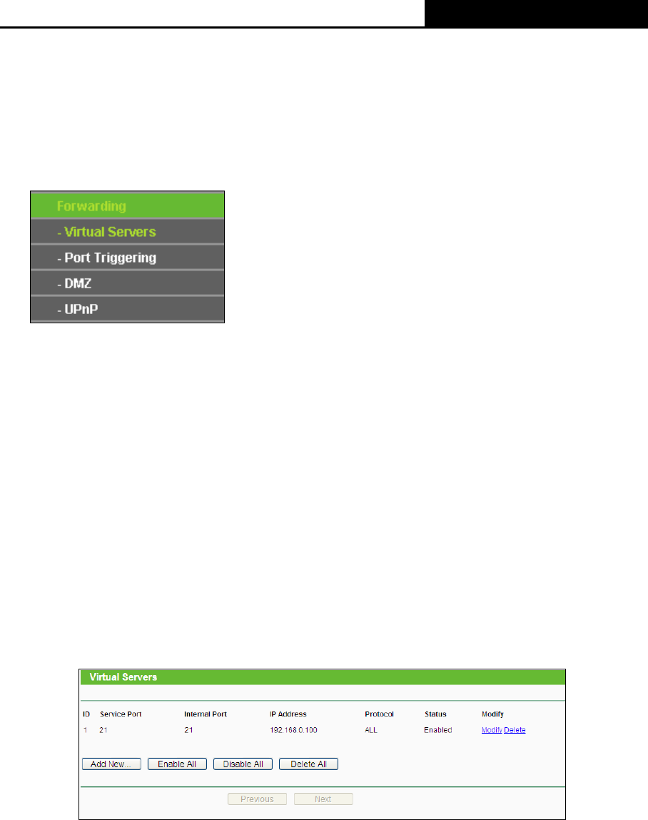 There are four submenus under the Forwarding menu (shown in Figure 4-31): Virtual Servers,