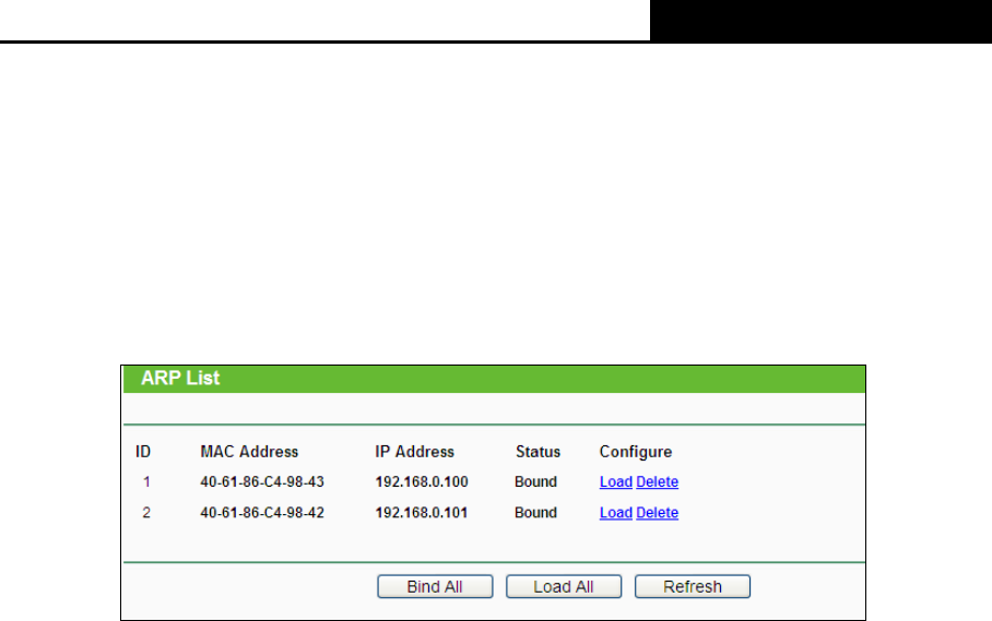 Click the Load All button to load all items to the IP & MAC Binding list.