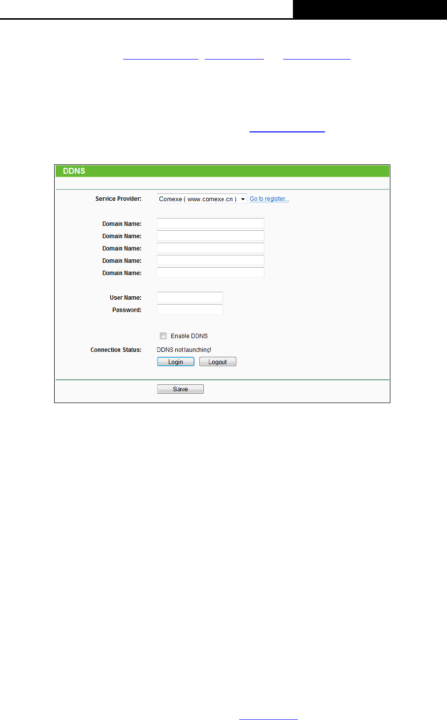 If the dynamic DNS Service Provider you select is www.comexe.cn, the page will appear as