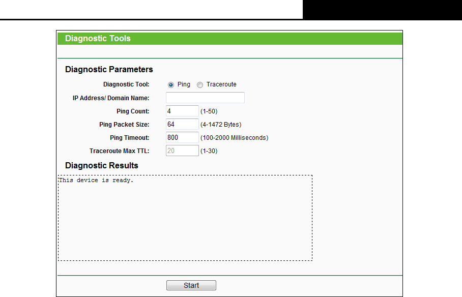 Click Start to check the connectivity of the Internet.