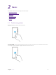 Swipe: Place your finger on the screen, and drag your finger to the direction you want. For example, you can swipe to scroll through the Home screen or a list. Drag: To drag, touch and hold an item and then move it to a new position. For example, you can rearrange a widget on the home screen. Zoom out: Pinch two fingers together on the screen. For example, pinch two fingers together to zoom out while viewing a picture or a web page. Chapter 2 .