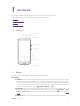 1 Get started This chapter introduces the smart phone’s hardware information and guides you how to assemble your phone when you get started on using your new phone. • Overview • Assemble your device • Power on • Charge your device 1. 1 Overview Headset Jack Earpiece Front Camera Volume Button Power Button Back Home Recent Apps Charge/Data Port 1. 2 Buttons The buttons you use with Neffos include virtual ones and physical ones.