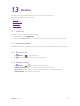 10. 4 Stopwatch Stopwatch contributes to recording precise time. Clock -> 1. On the Home screen, tap 2. Tap to start counting. 3. Tap to stop counting, and then tap 4. once or several times to count the time when counting. The time of your each tap and the interval Tap time between every two taps will be displayed. 5. Tap Stopwatch. to continue or tap to restart. to share the lap times. Chapter 10 .