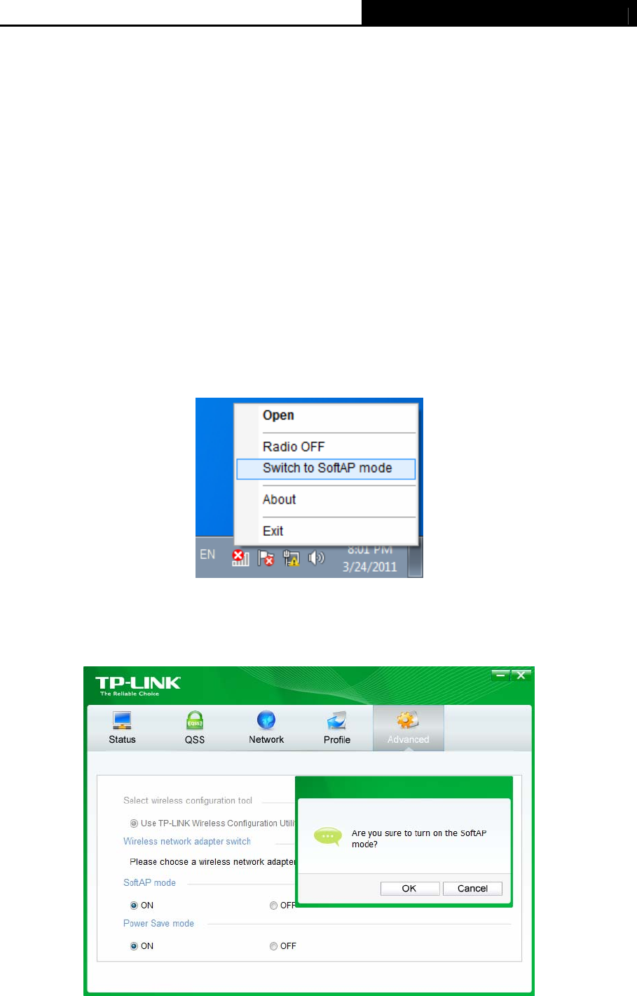 Or from the Advanced page of the utility, tick ON under the SoftAP mode as shown in the
