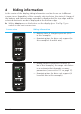 3 Operation and indication components 3.1 Overview display Pos. in Fig. 1 Description 1 State of charge battery (max. 10 bars, 1 bar corresponds 10 %) 2 State of charge range extender (max. 5 bars, 1 bar corresponds 20 %) 3 Display panel for different screen views with riding information (see section 6 on page 10) 4 Assist mode (OFF, I, II, III) 5 Button 3.2 1 2 3 4 5 Fig. 1: Operation and indicaton components on display Overview remote Pos. in Fig.