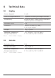 2 Technical data 2.1 Display Screen diagonal 2 inch State of charge indication Seperate for battery and range extender Connectivity Bluetooth, ANT+ (Radio network standard with low power consumption) Protection class IP66 Dimension 74 mm x 32 mm x 12,5 mm / 2,91“ x 1,26“ x 0,49“ Weight 35 g / 1,23 oz Operating temperature Storage temperature -5 °C to +40 °C / 23 °F to 104 °F 0 °C to +40 °C / 32 °F to 140 °F Tab. 1: Technical data – Display 2.