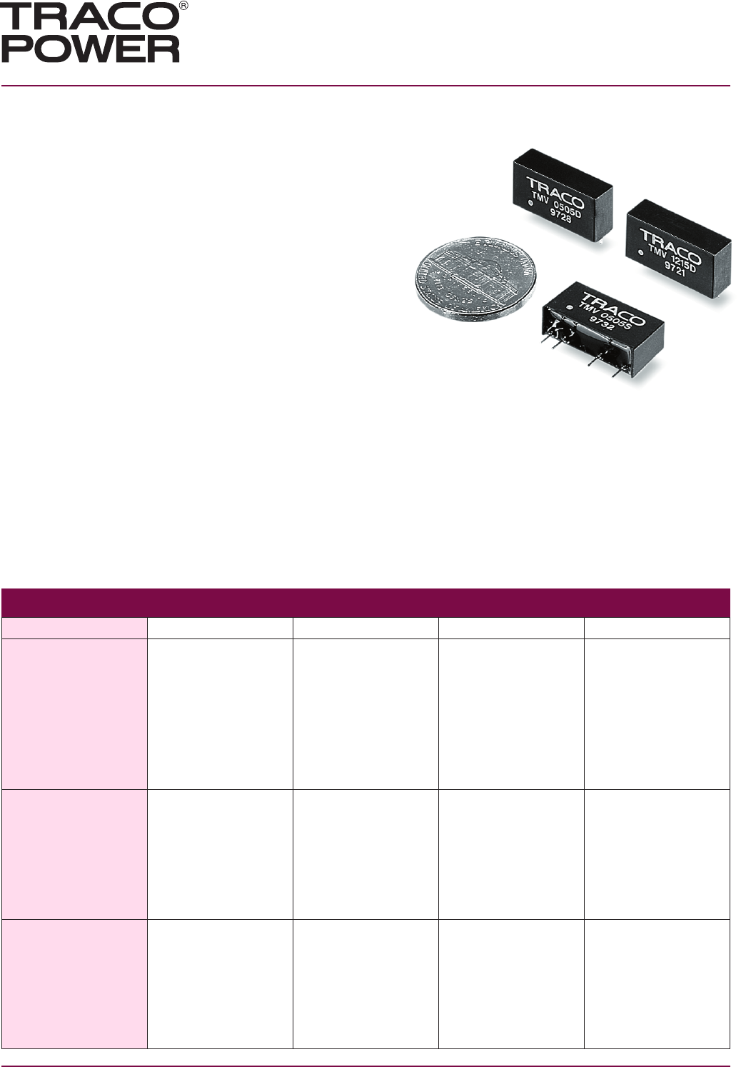 The TMV series are miniature, isolated 1 W DC/DC-converters with high isolation