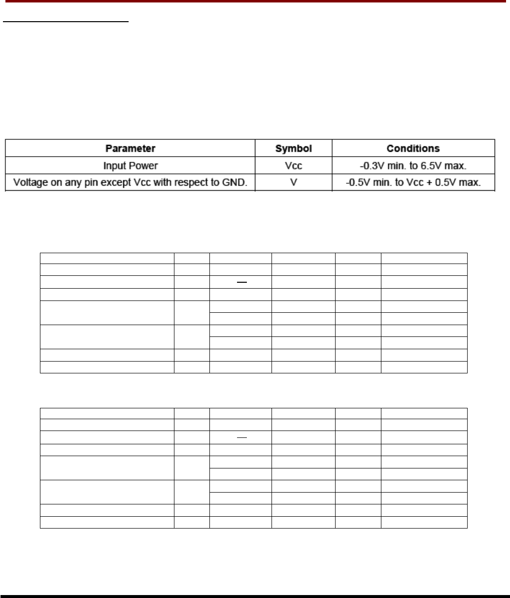The following tables indicate all D.C. Characteristics for the CompactFlash Storage Card. Unless