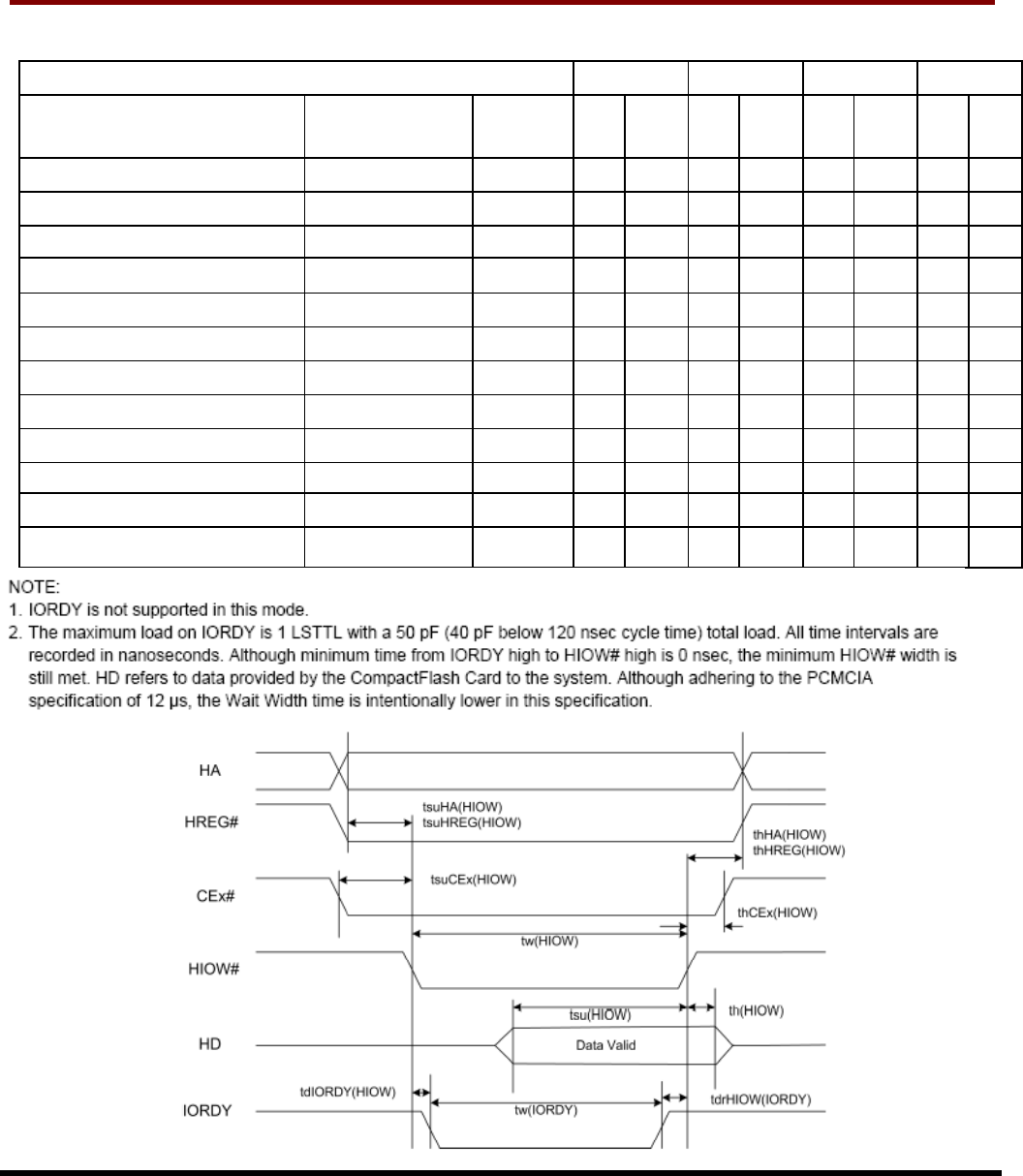 I/O Output (Write) Timing Specification
